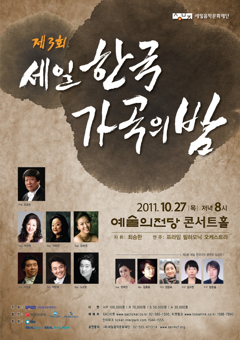목록 (재)세일음악문화재단 정기공연 "제3회 세일 한국가곡의 밤"(2011.10.27)